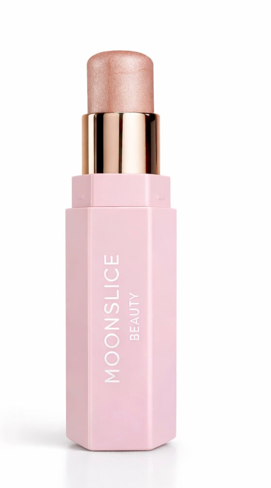 A universally flattering cream highlight stick featuring golden and pink tones adding a perfect touch of glow.